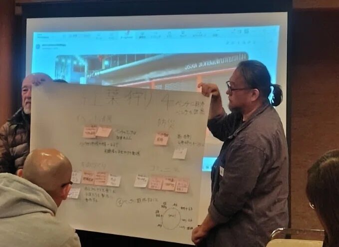 京都や大阪を中心に“まちのベンチ”づくりに取り組む団体が集まり、実践報告やグループセッションが行われました。今回は愛知県、そしてなんとタイからの参加者も。