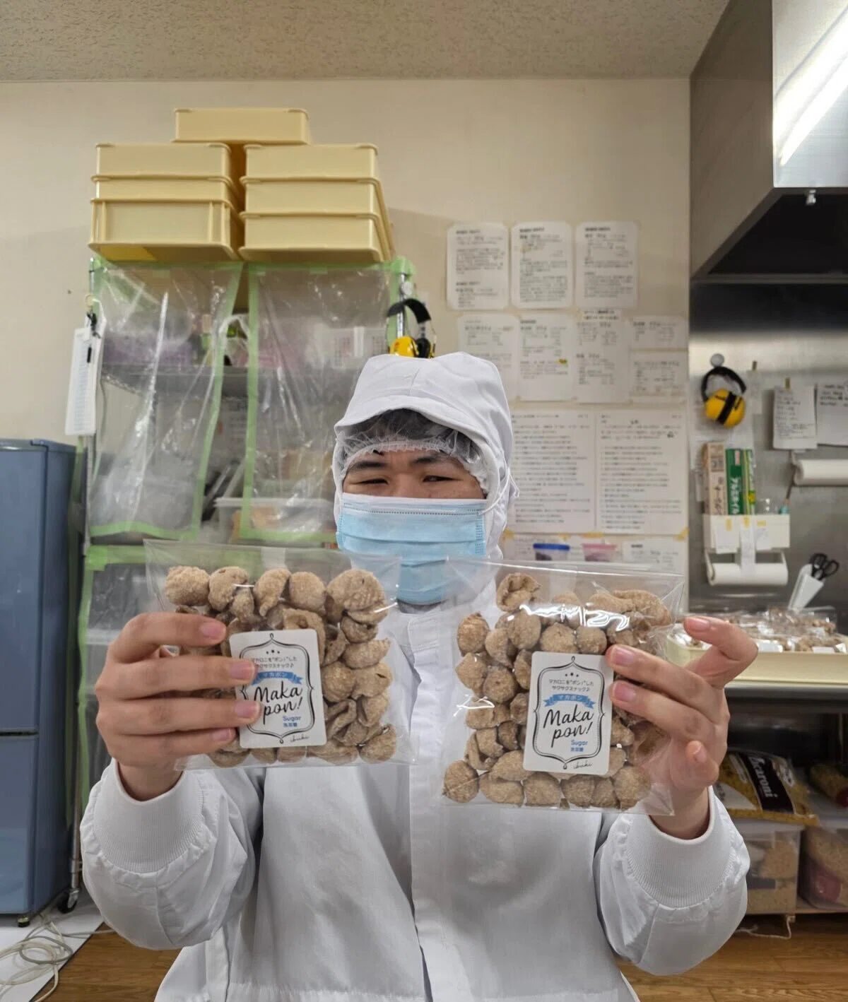 マカポンはマカロニを昔ながらのポン菓子機で